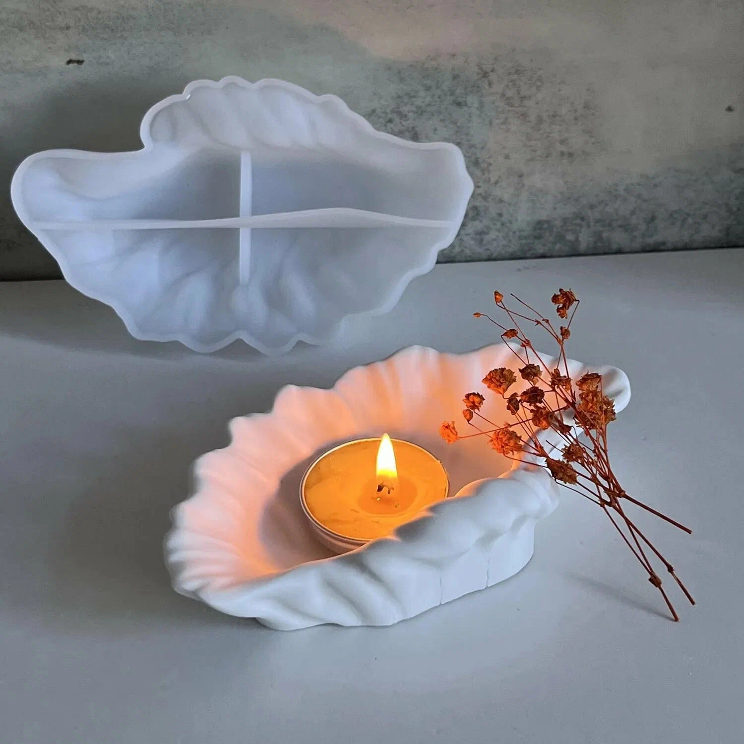 Un moule élégant et polyvalent en silicone blanc, parfait pour créer des bougeoirs style lave, petits pots, objets en plâtre, résine, cire ou argile 🌊.